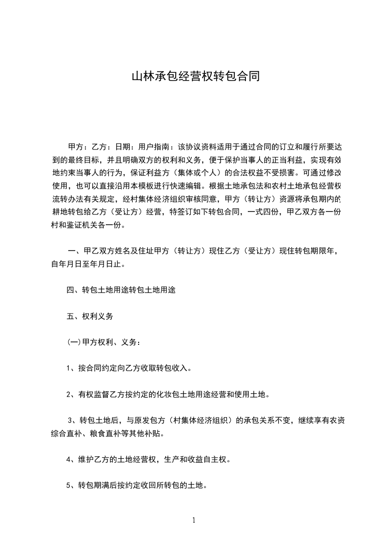 九、在承包期满后,若甲方继续发包,在同等条件下乙方享有优先权,乙方在承包期内转包山林,并经发包方同意,在承包期内,若乙方发生意外死亡,其法定继承人可以在承包期内继承承包。