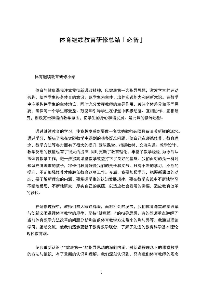 体育继续教育研修总结