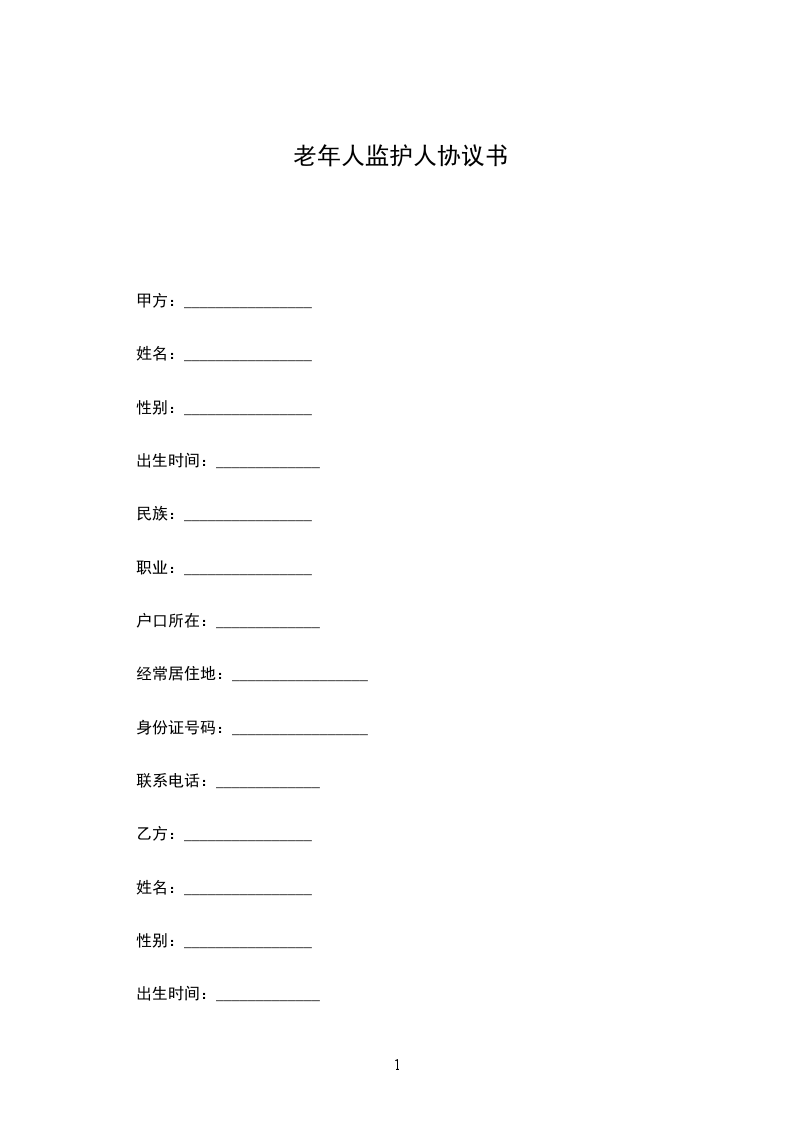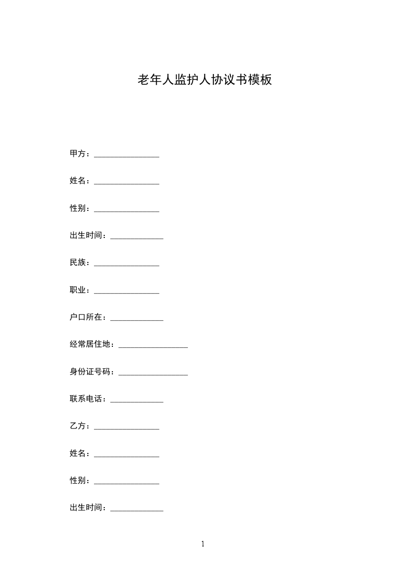 老年人监护人协议书模板
