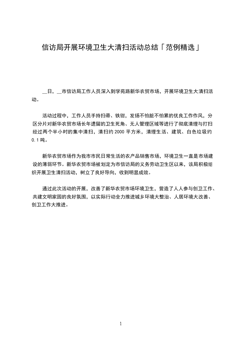 __日,__市信访局工作人员深入到学苑路新华农贸市场,开展环境卫生大清扫活动。