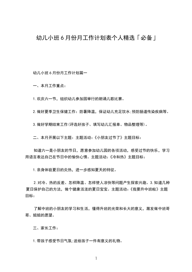 幼儿小班6月份月工作计划篇一