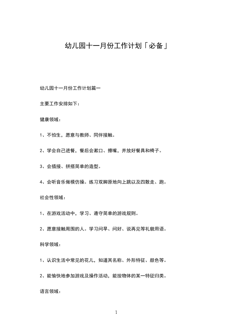 幼儿园十一月份工作计划篇一