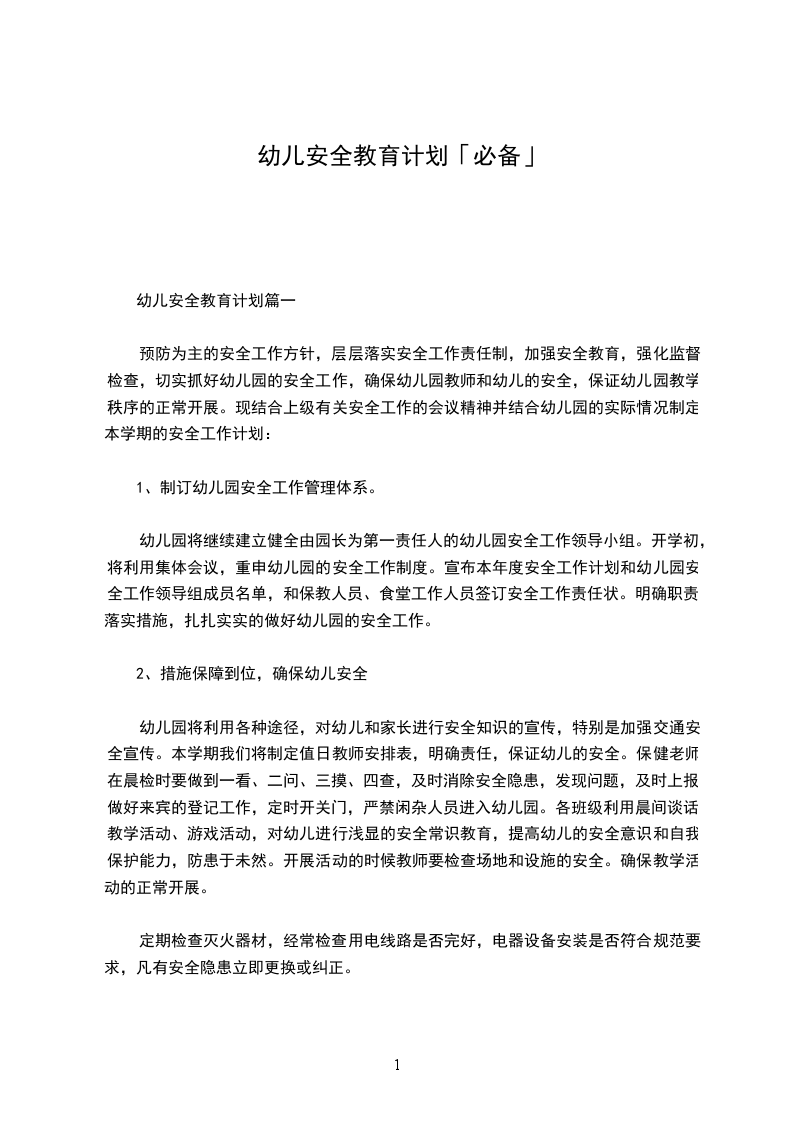 预防为主的安全工作方针,层层落实安全工作责任制,加强安全教育,强化监督检查,切实抓好幼儿园的安全工作,确保幼儿园教师和幼儿的安全,保证幼儿园教学秩序的正常开展。现结合上级有关安全工作的会议精神并结合幼儿园的实际情况制定本学期的安全工作计划: