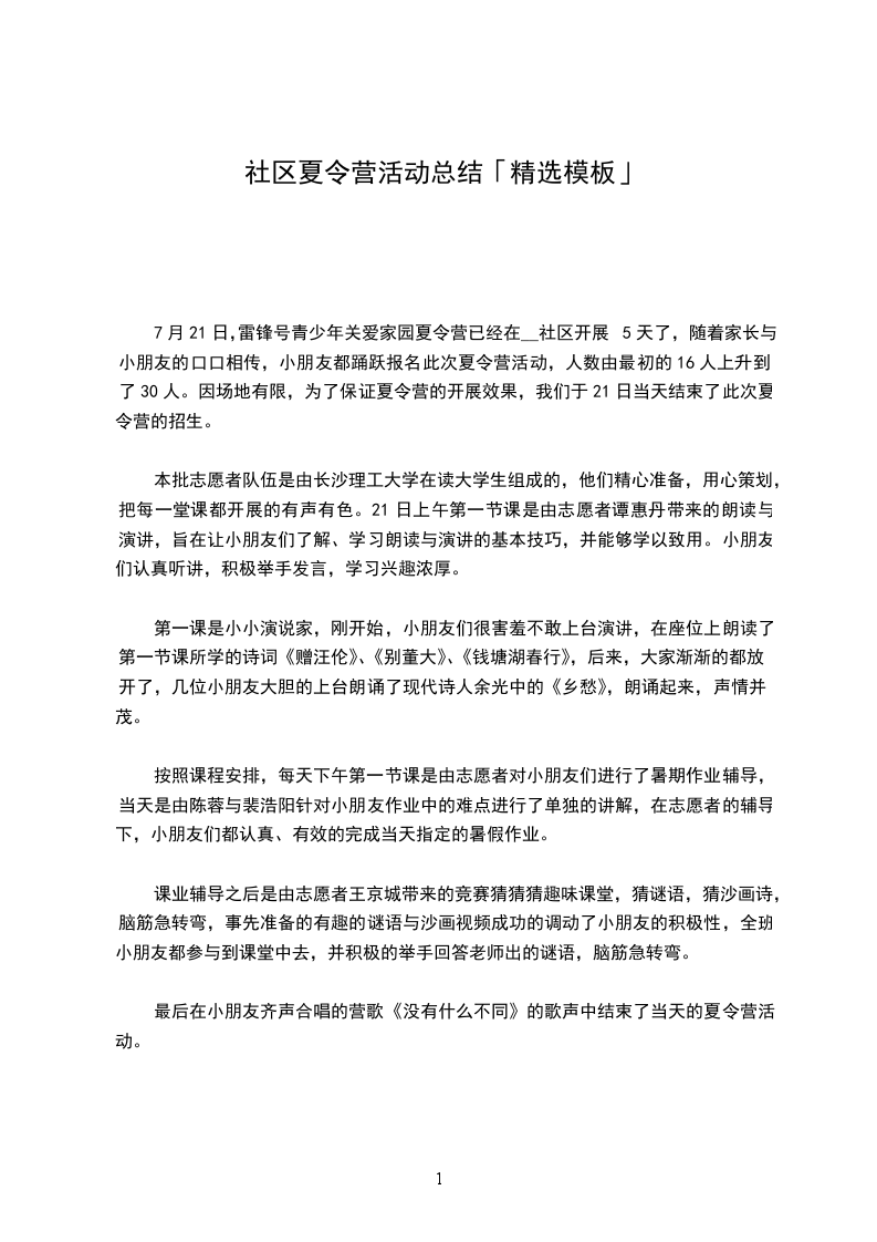 7月21日,雷锋号青少年关爱家园夏令营已经在__社区开展5天了,随着家长与小朋友的口口相传,小朋友都踊跃报名此次夏令营活动,人数由最初的16人上升到了30人。因场地有限,为了包管夏令营的开展后果,我们于21日当天停止了此次夏令营的招生。