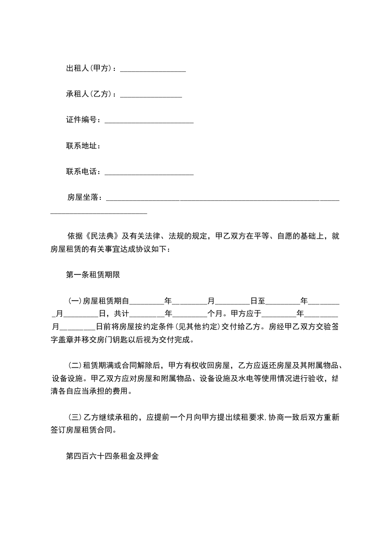 根据《中华人民共和国民法典》及有关规定,按照平等互利的原则,为明确出租方与承租方的权利与义务关系,经双方协商,签订本合同。