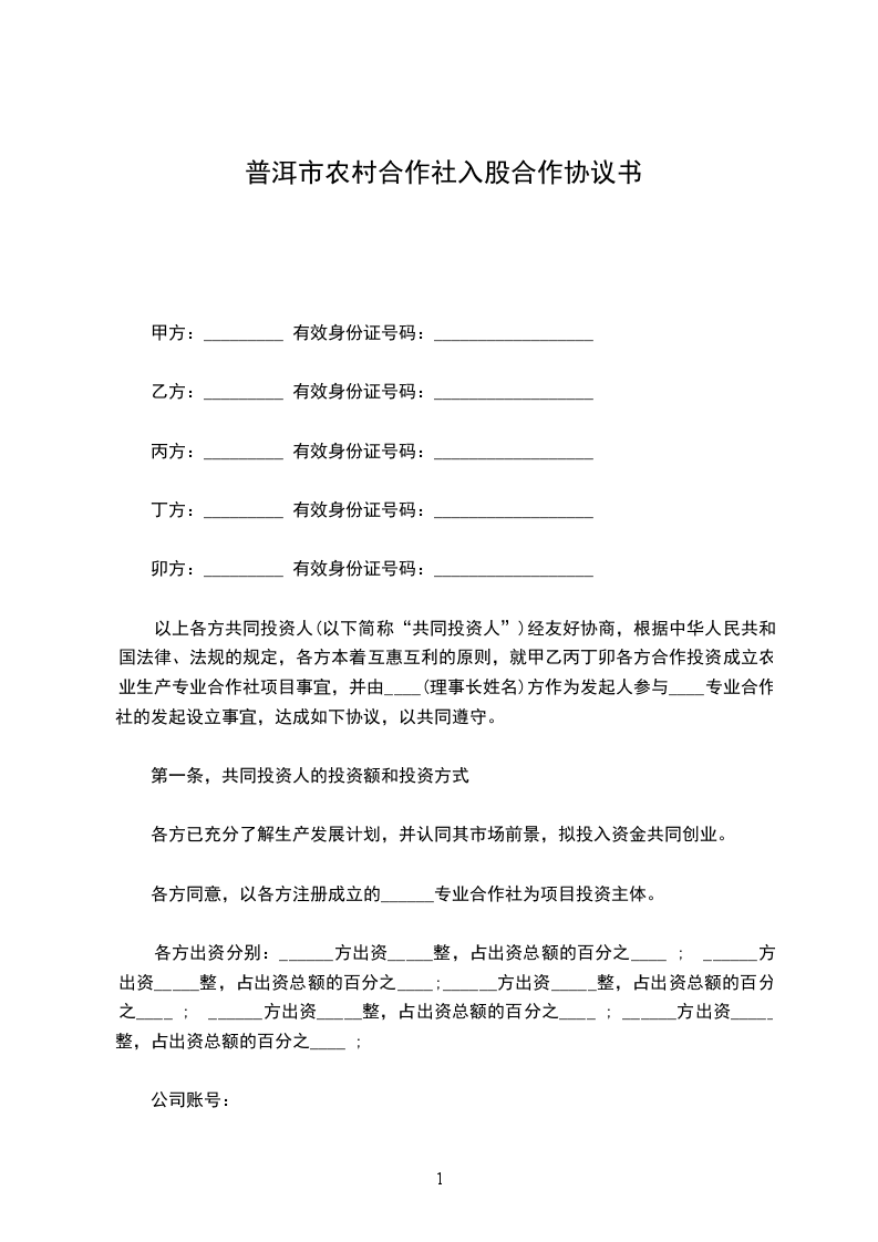 以上各方共同投资人(以下简称“共同投资人”)经友好协商,根据中华人民共和国法律、法规的规定,各方本着互惠互利的原则,就甲乙丙丁卯各方合作投资成立农业生产专业合作社项目事宜,并由____(理事长姓名)方作为发起人参与____专业合作社的发起设立事宜,达成如下协议,以共同遵守。