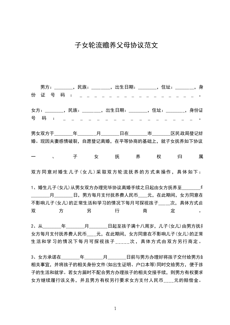 女方:________,民族:________,出生日期:________,住址:________,身份证号码:________________。