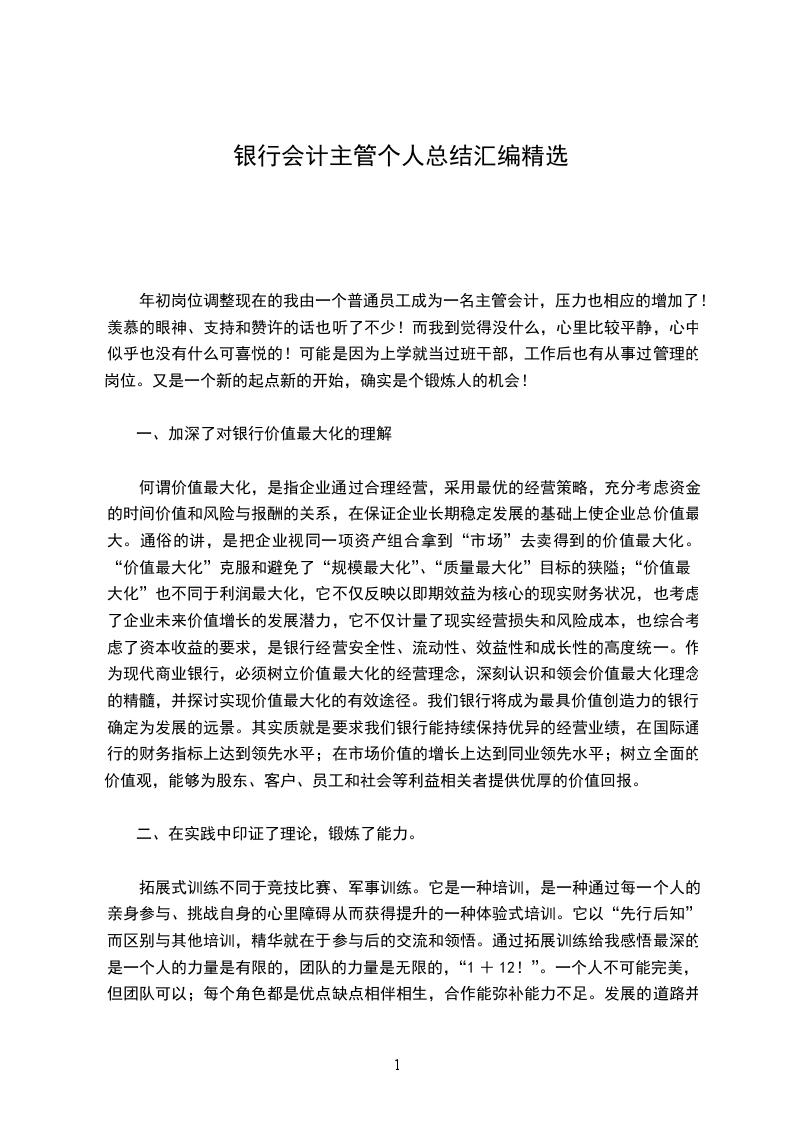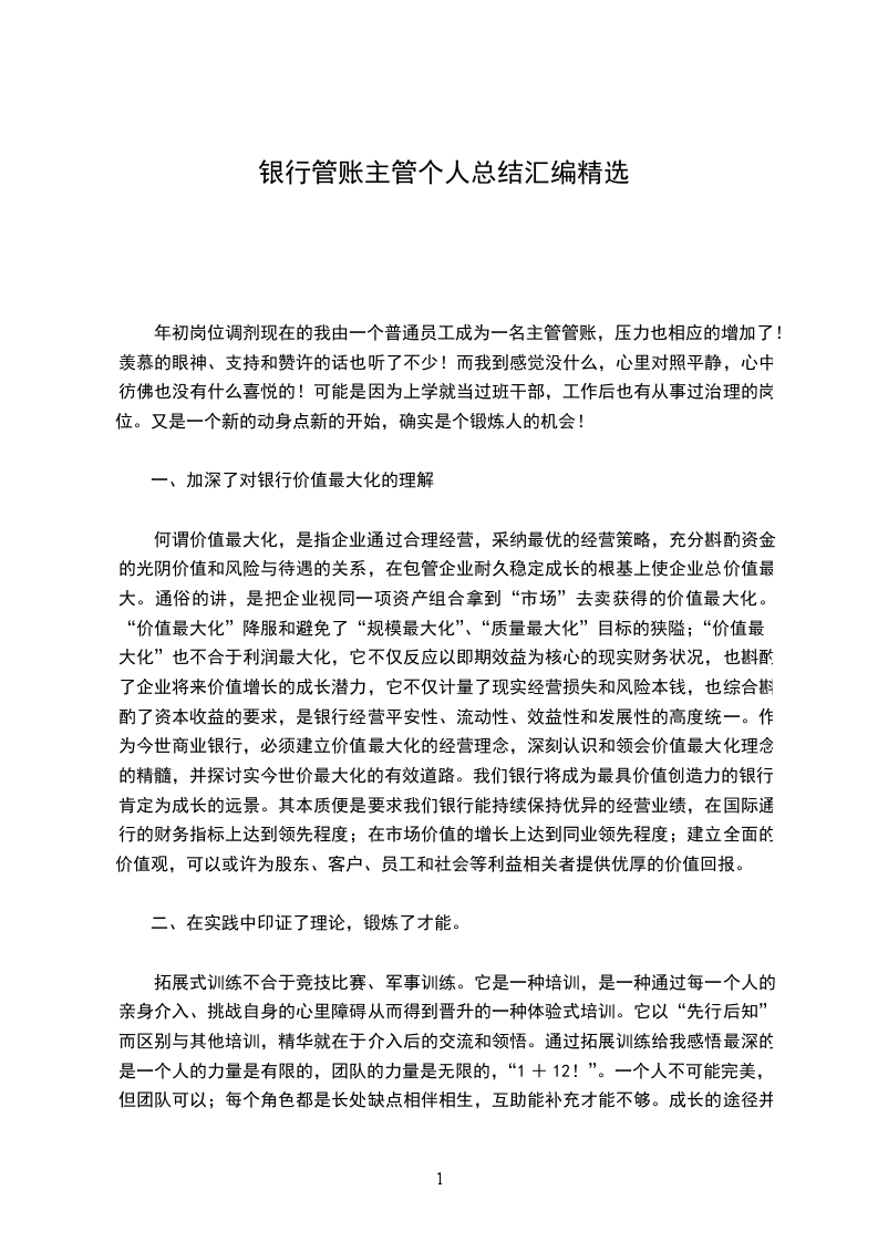 1、加倍深刻的理解了银行价值最大化的经营理念。