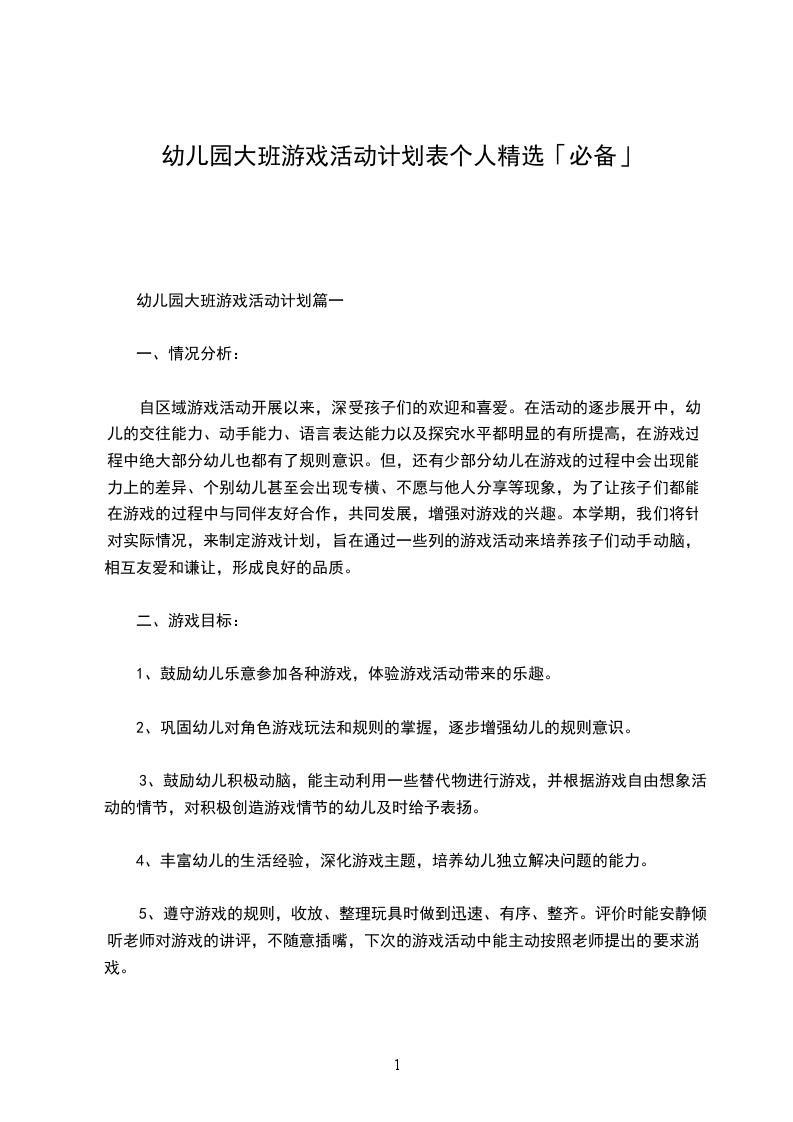 幼儿园中班游戏活动计划篇一