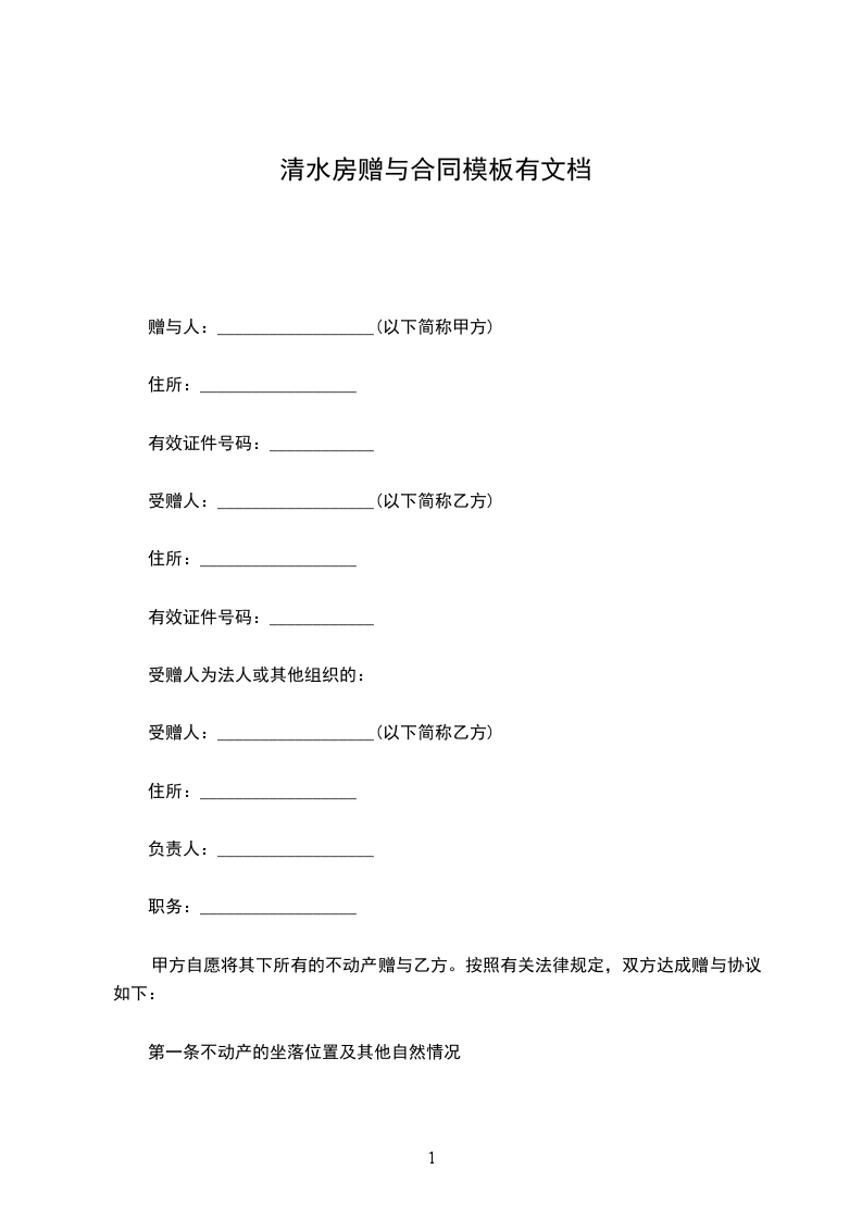 受赠人:__________________(以下简称乙方)