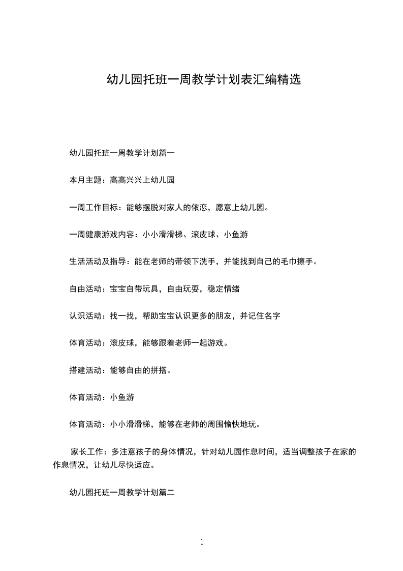幼儿园托班一周教学计划篇一