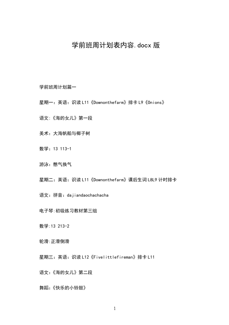学前班周计划篇一