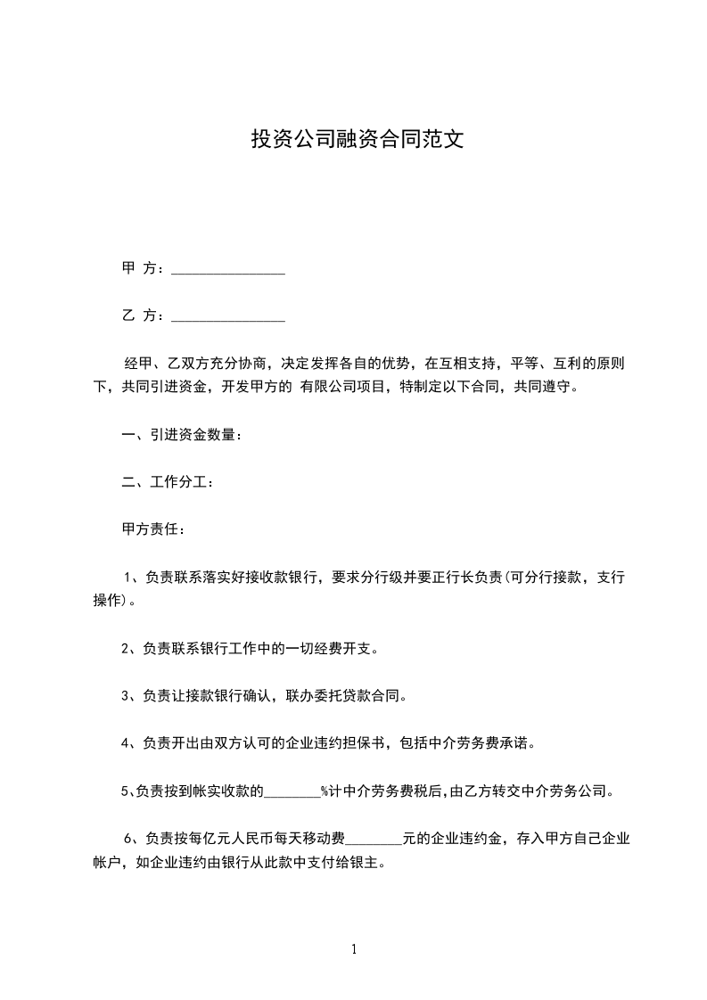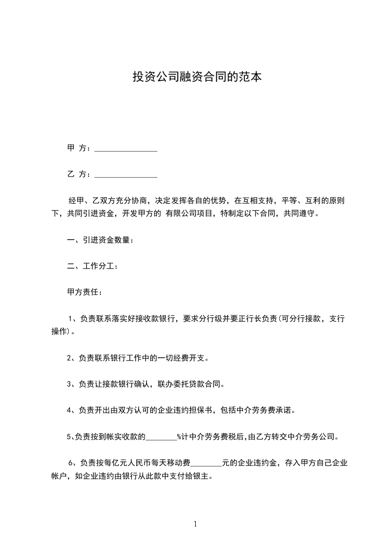 1、双方本着友好、协商的精神,共同努力做好引资前的各项工作,确保融资合同顺利操作。