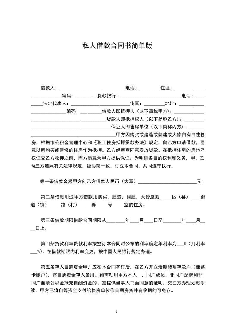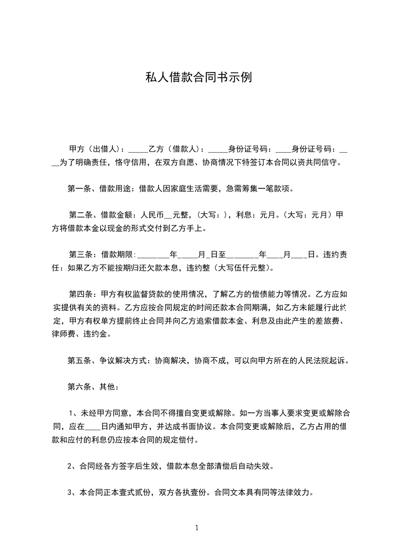 今借到×××人民币_____元整(¥:元),月内还清,不计息。