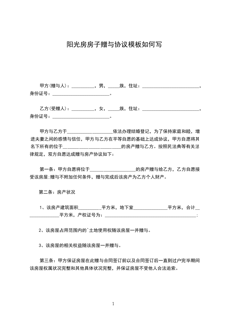 第一条赠与房屋状况