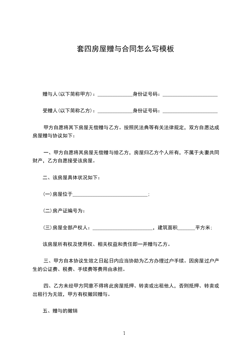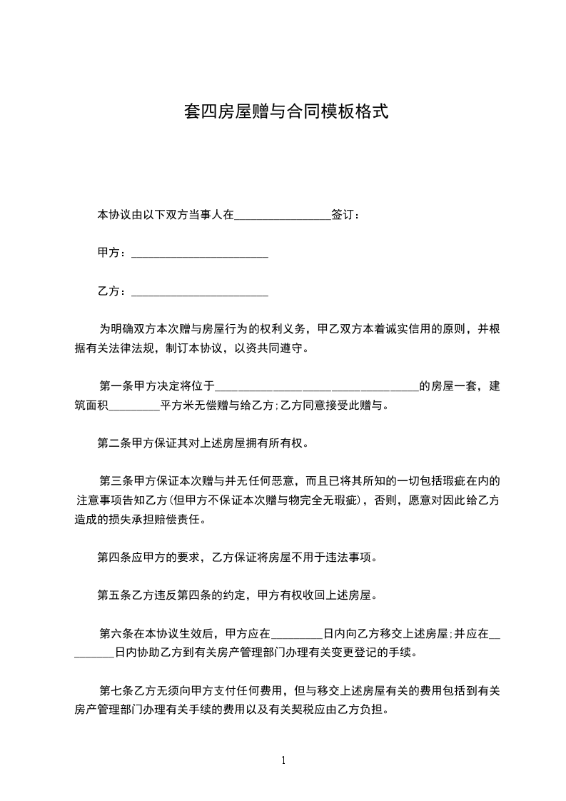 1、甲方决定在乙方年满十八周岁,即________年____月___日,将位于阳春市____区____路____楼____层____号的房屋一套(结构:______________________,产权证号:______________________,产权类别:______________________,建筑面积___________平方米),无偿赠与给乙方,此赠与为不可撤销之赠与。乙方同意接受此次赠与。