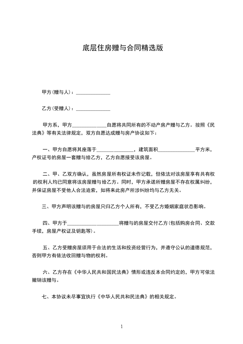甲方系,甲方______________自愿将共同所有的不动产房产赠与乙方。按照《民法典》等有关法律规定,双方自愿达成赠与房产协议如下:
