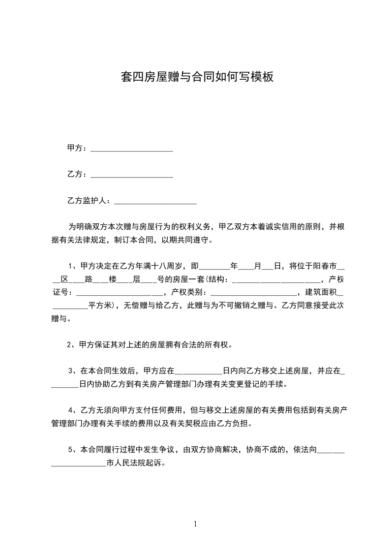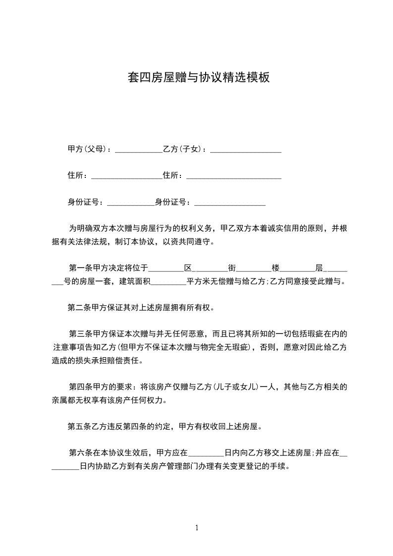 受赠人(以下简称乙方):______________身份证号码:______________________