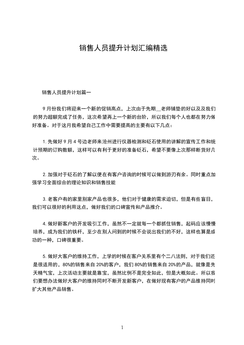 销售人员提升计划篇一