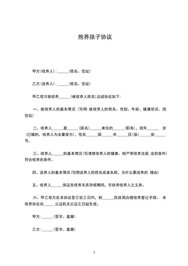 甲方(收养人):______(姓名、住址)