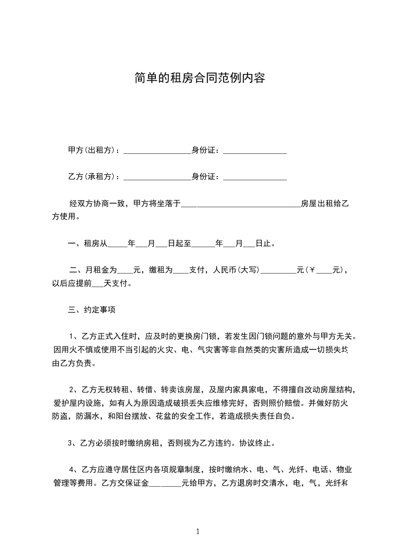 4、乙方应遵守居住区内各项规章制度,按时缴纳水、电、气、光纤、电话、物业管理等费用。乙方交保证金________元给甲方,乙方退房时交清水,电,气,光纤和物业管理等费用及屋内设施家具、家电无损坏,下水管道,厕所无堵漏。甲方如数退还保证金。