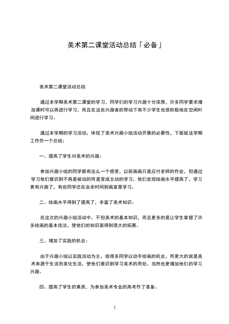 美术第二课堂活动总结
