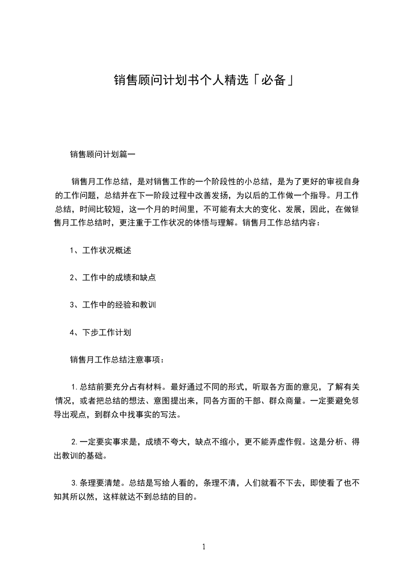 销售顾问工作计划篇一