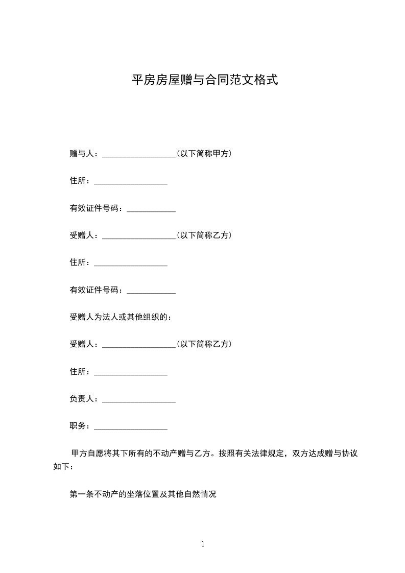 受赠人:__________________(以下简称乙方)