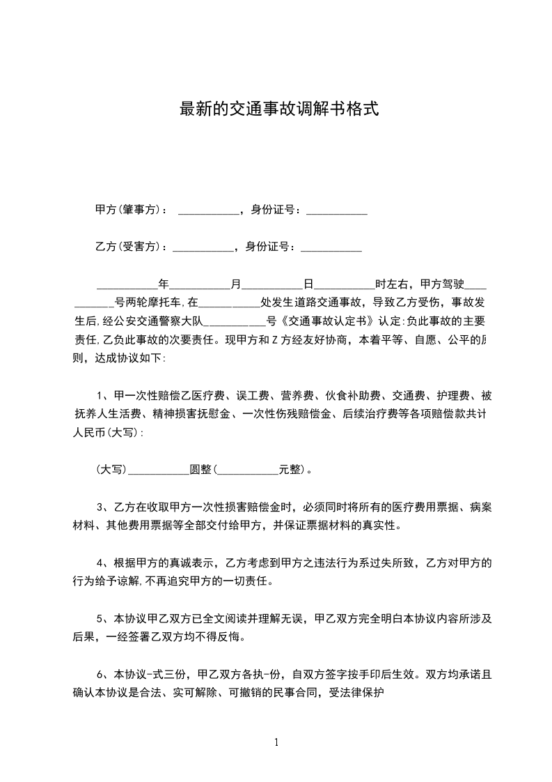7、本协议签署后,本次事故为一次性全部处理终结,以后无论乙方伤情发生任何变化,乙方不得以任何理由就本事故再向甲方主张任何权利或提出任何要求,否则视为违约。