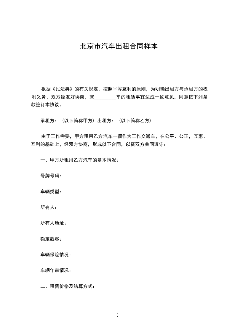 根据《民法典》的有关规定,按照平等互利的原则,为明确出租方与承租方的权利义务,双方经友好协商,就_________车的租赁事宜达成一致意见,同意按下列条款签订本协议。