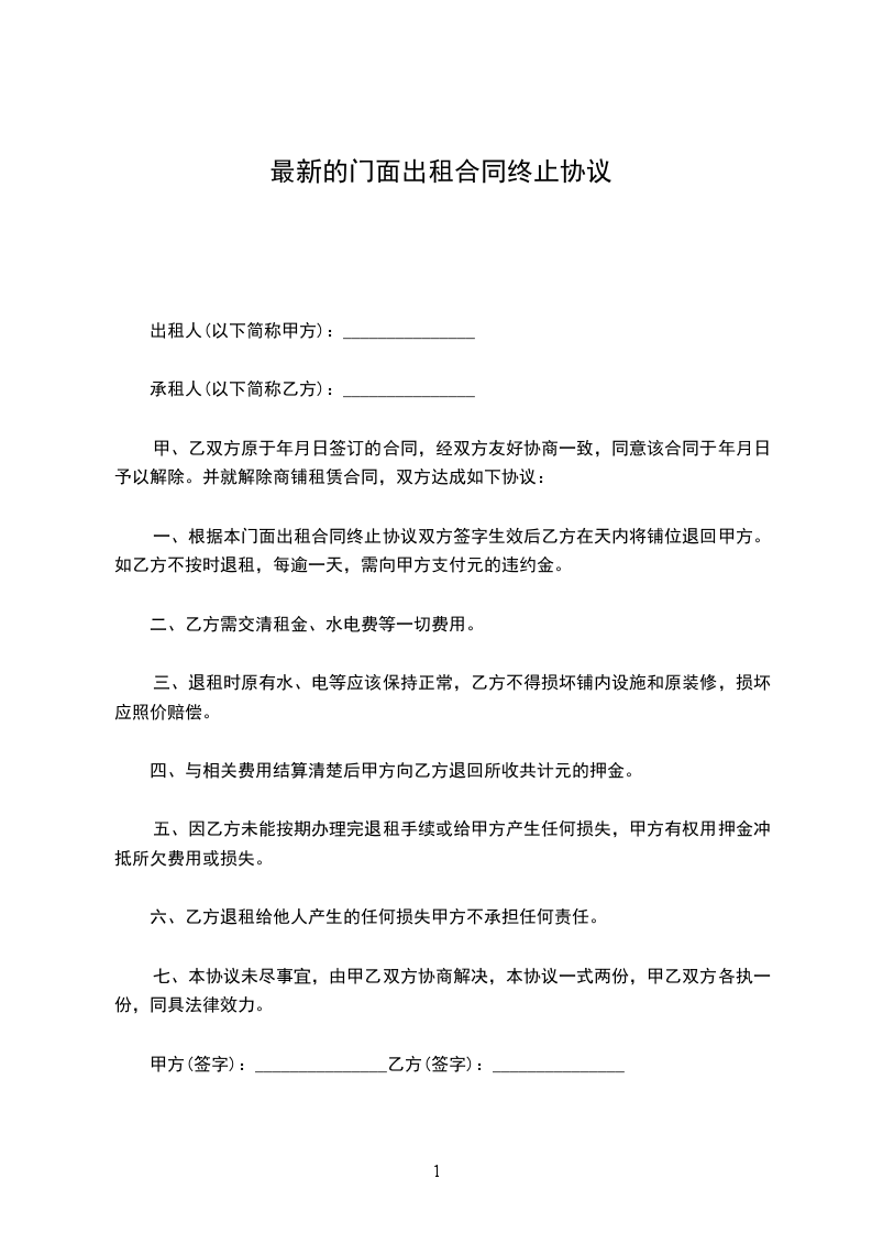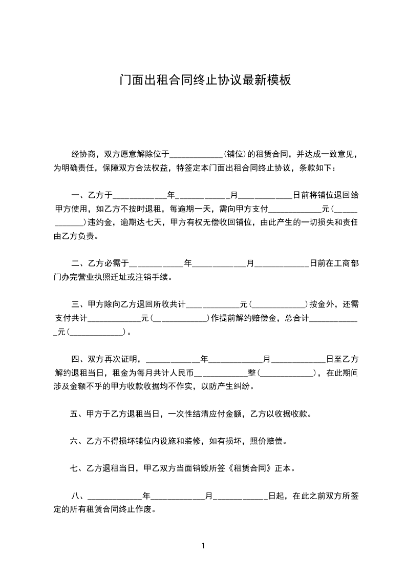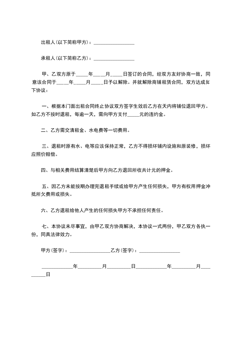 1.若甲方在乙方没有违反本合同的情况下提前解除合同或租给他人,视为甲方违约,负责赔偿违约金______元。