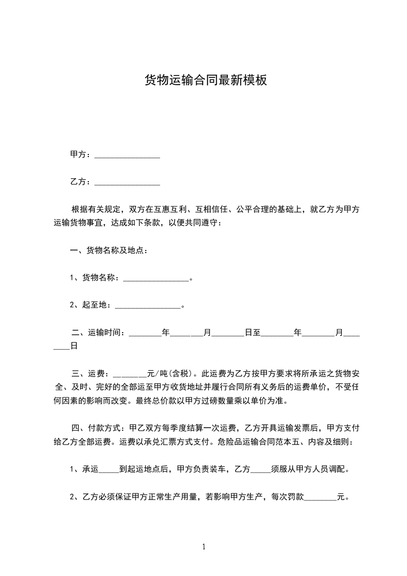 根据有关规定,双方在互惠互利、互相信任、公平合理的基础上,就乙方为甲方运输货物事宜,达成如下条款,以便共同遵守: