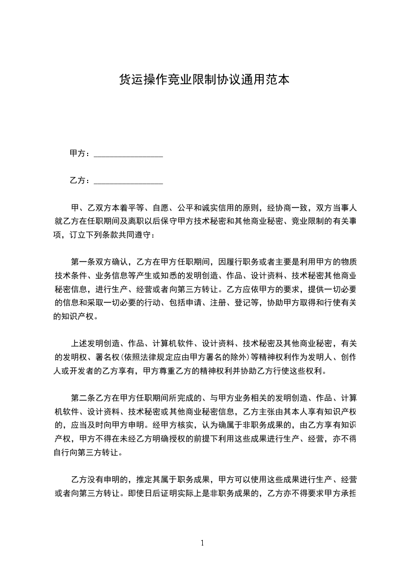 甲、乙双方本着平等、自愿、公平和诚实信用的原则,经协商一致,双方当事人就乙方在任职期间及离职以后保守甲方技术秘密和其他商业秘密、竞业限制的有关事项,订立下列条款共同遵守: