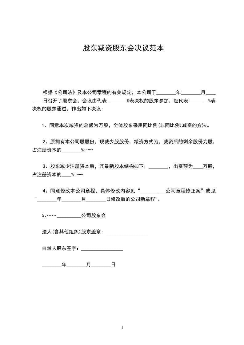 2、原拥有本公司股股份,现减少股股份,减资方式为,减资后的剩余股份为股,占注册资本的________%;……