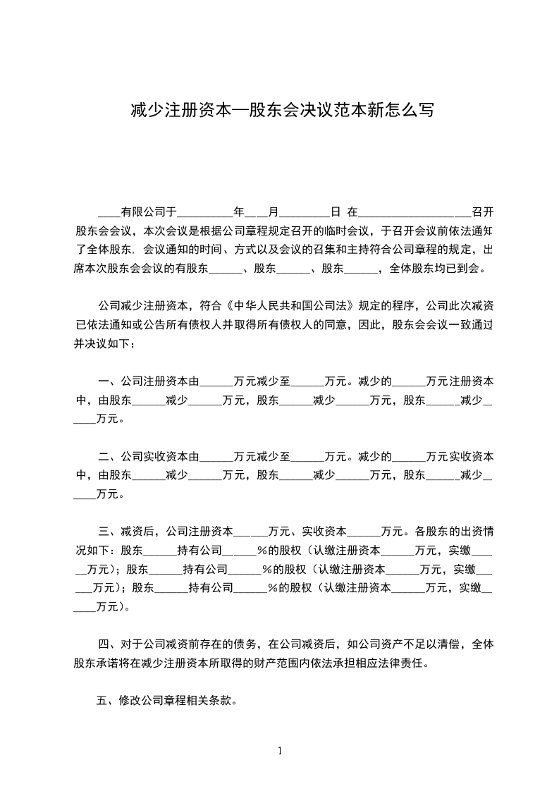 3、股东减少注册资本后,其最新股本结构如下:________,出资额为____万股,占注册资本的____%;……