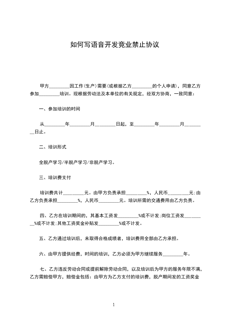 如何写语音开发竞业禁止协议