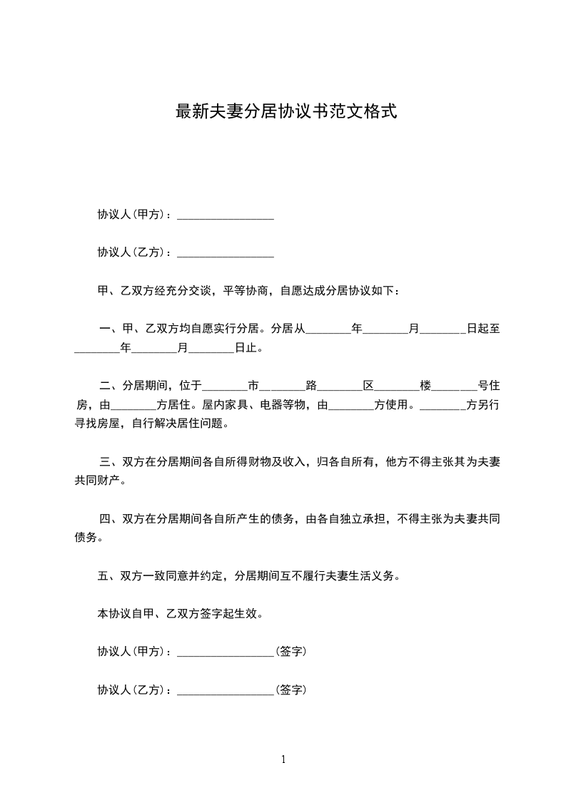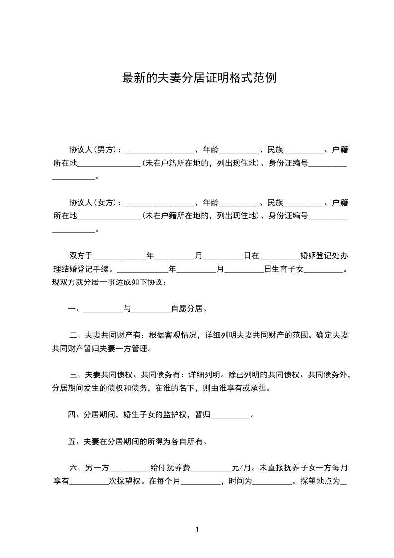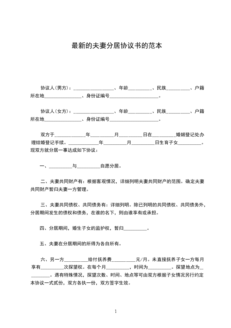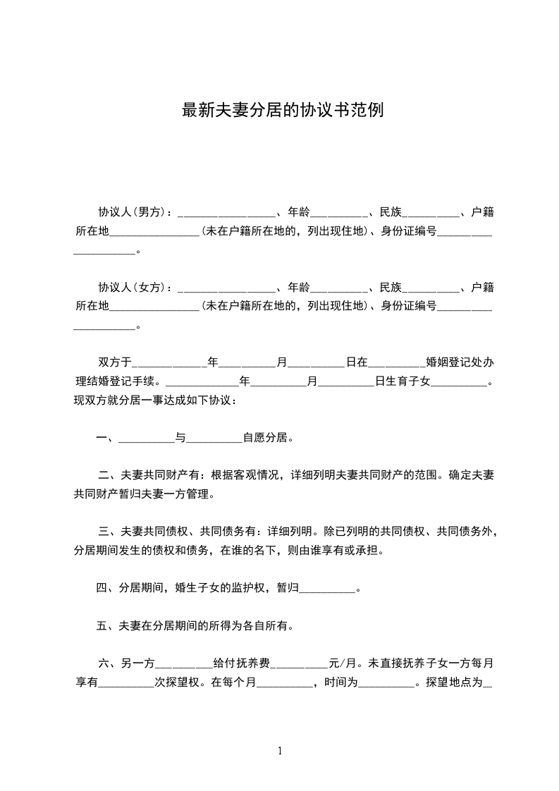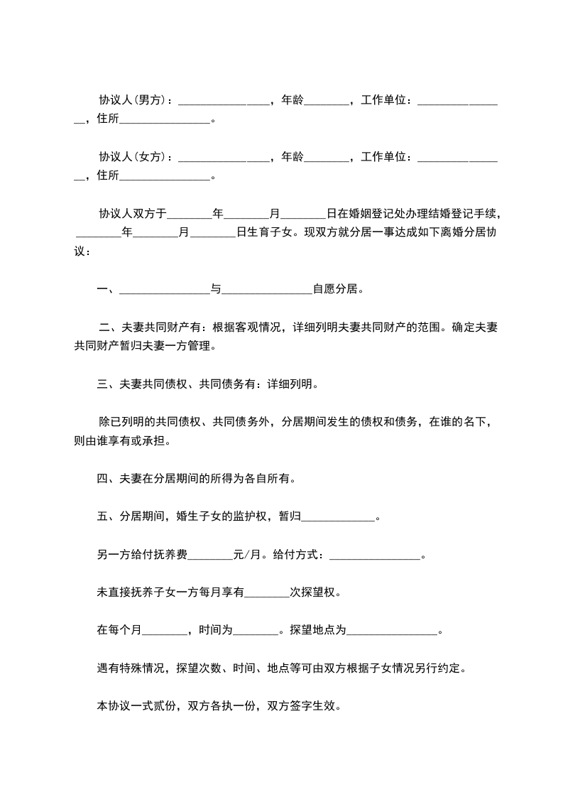 双方于_____________年__________月__________日在__________婚姻登记处办理结婚登记手续。_____________年__________月__________日生育子女__________。现双方就分居一事达成如下协议: