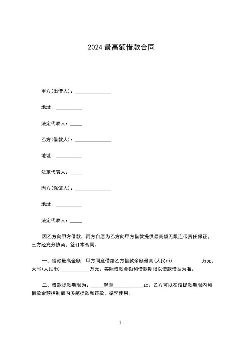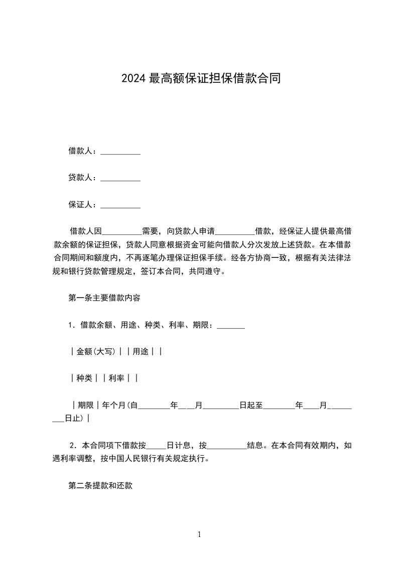 2024最高额担保制式合同最新的模板