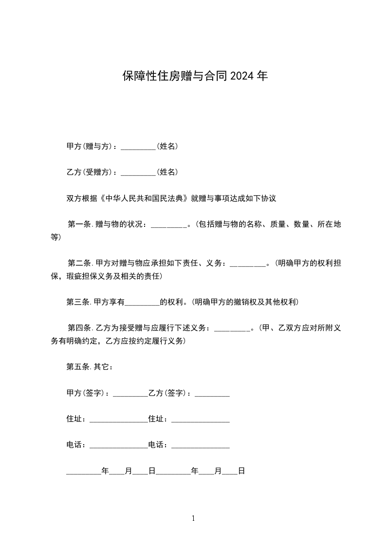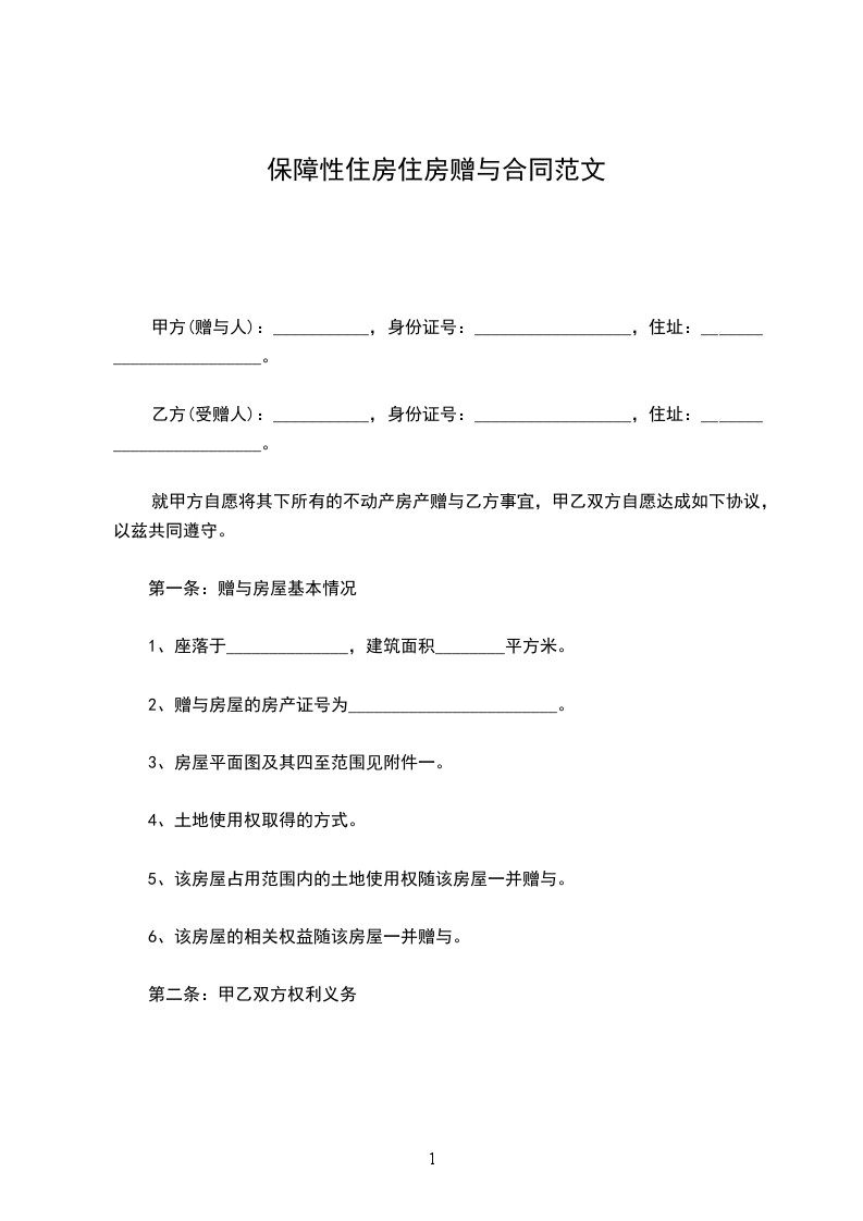 第一条.赠与物的状况:_________。(包括赠与物的名称、质量、数量、所在地等)