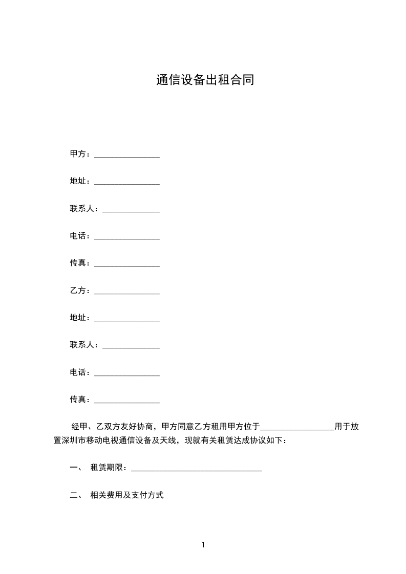 经甲、乙双方友好协商,甲方同意乙方租用甲方位于__________________用于放置深圳市移动电视通信设备及天线,现就有关租赁达成协议如下: