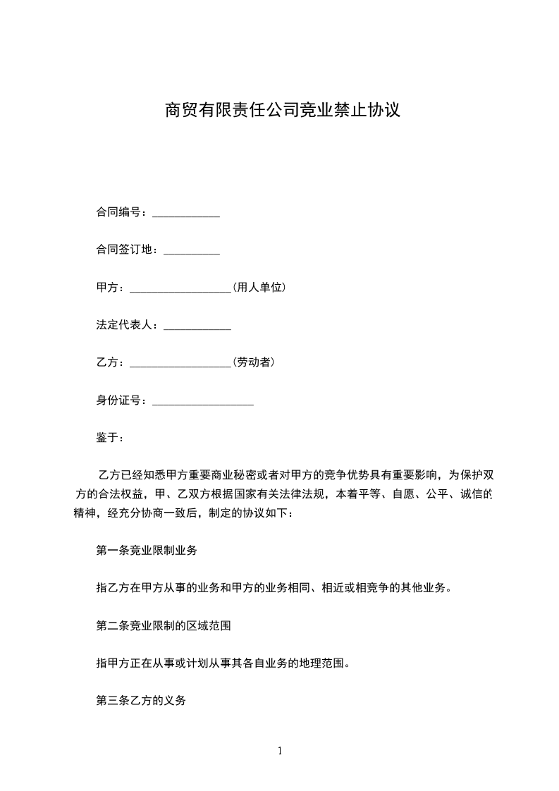 1、未经甲方同意,在职期间不得自营或者为他人经营(包括投资于)与甲方同类的营业。