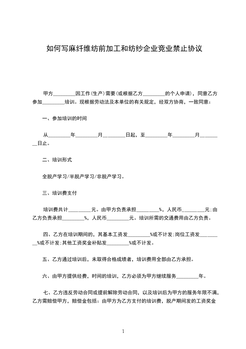 如何写麻纤维纺前加工和纺纱企业竞业禁止协议