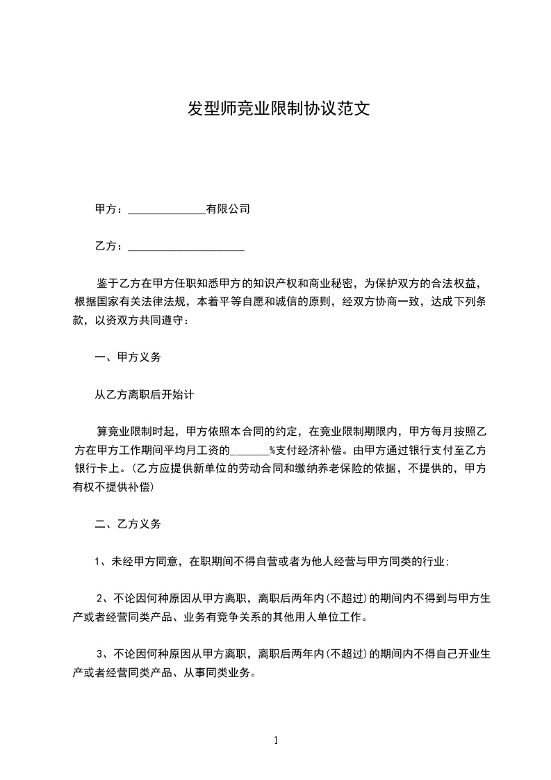 1、未经甲方同意,在职期间不得自营或者为他人经营与甲方同类的行业;