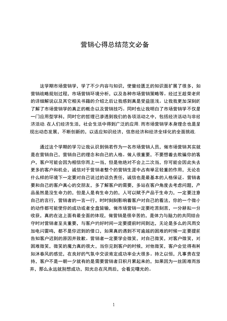 学习市场营销,目前我的这些心得似乎有些浅薄,但是我希望在学习中不断充实使自己越来越完善!