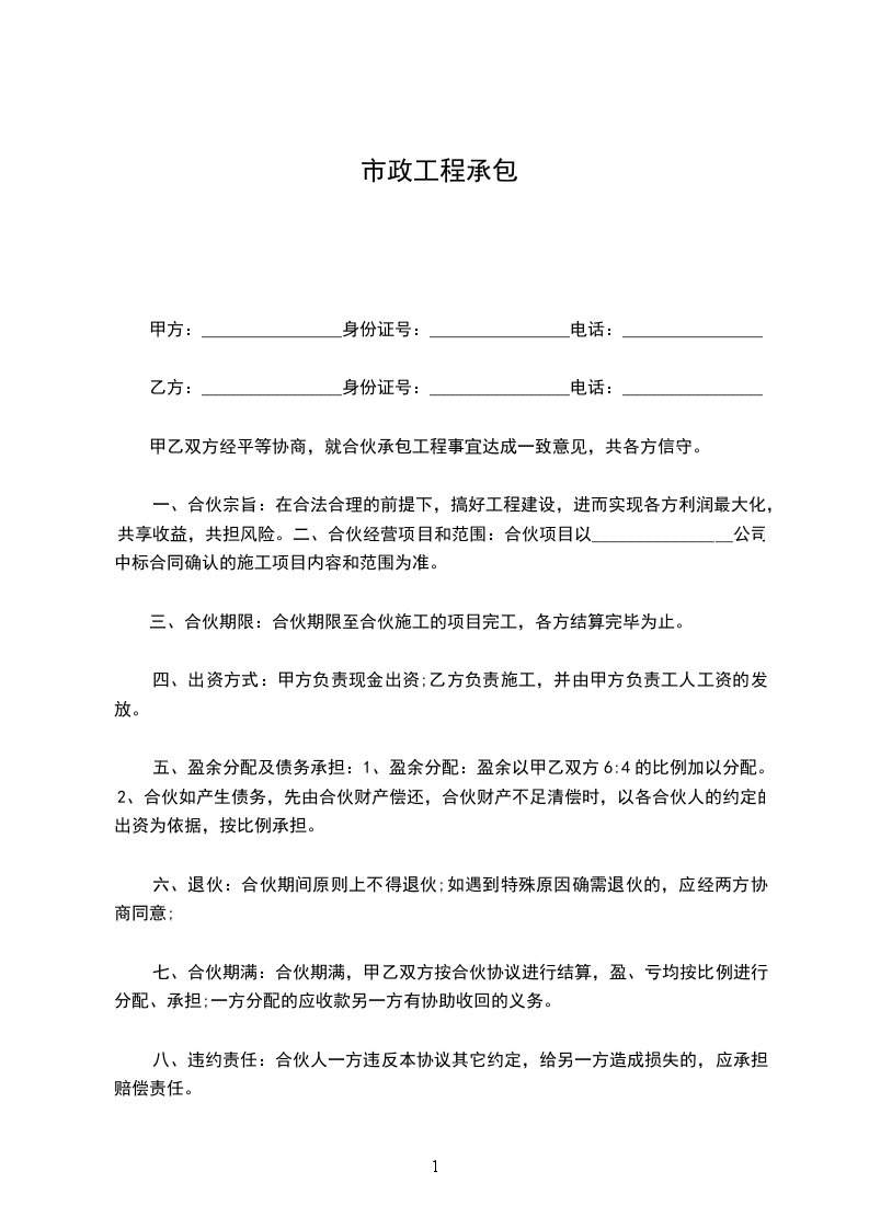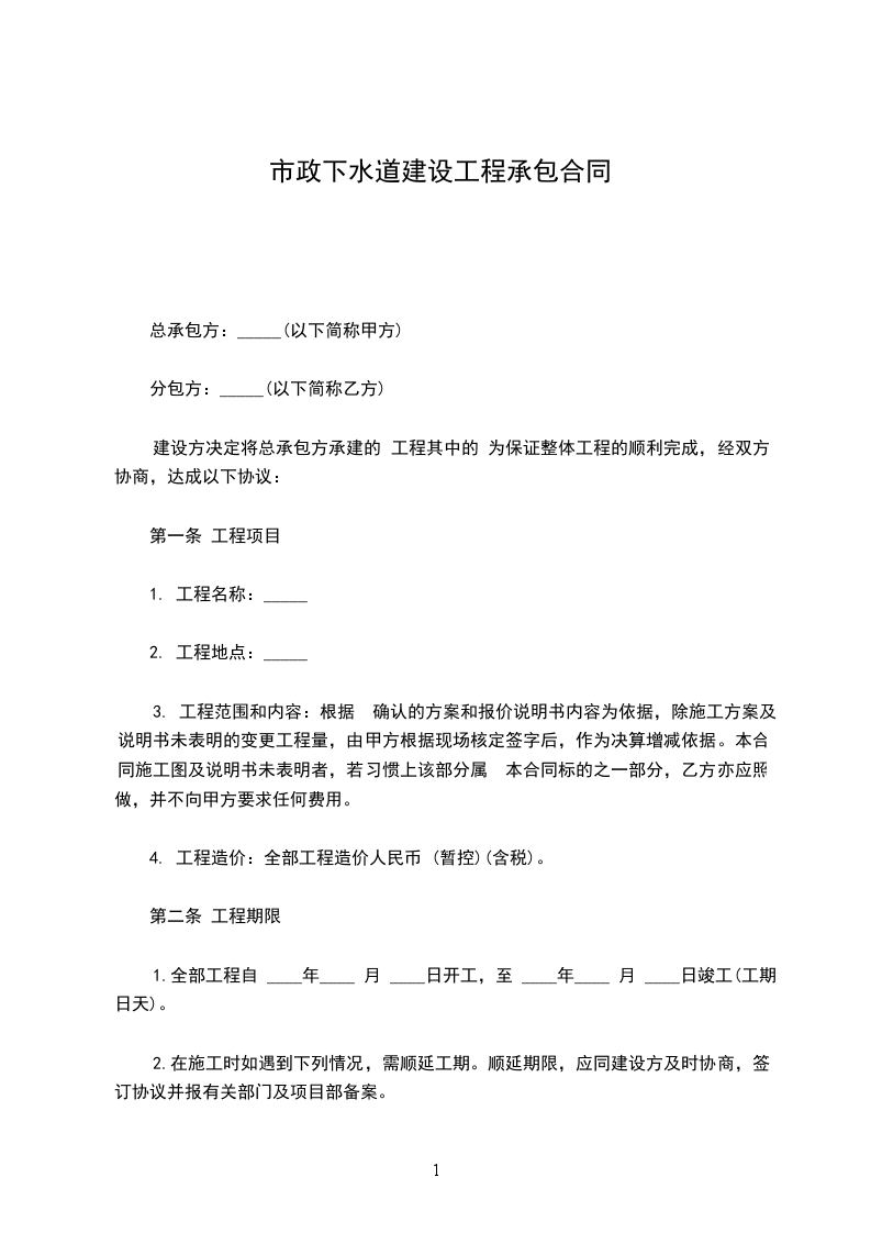 甲乙双方经过友好协商,就乙方承包甲方所有的管道施工事宜达成一致,签订本合同。