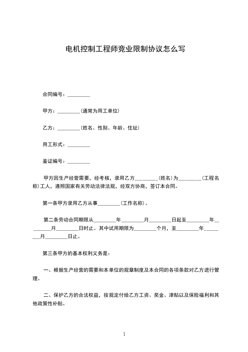 第一条甲方录用乙方从事_________(工作名称)。