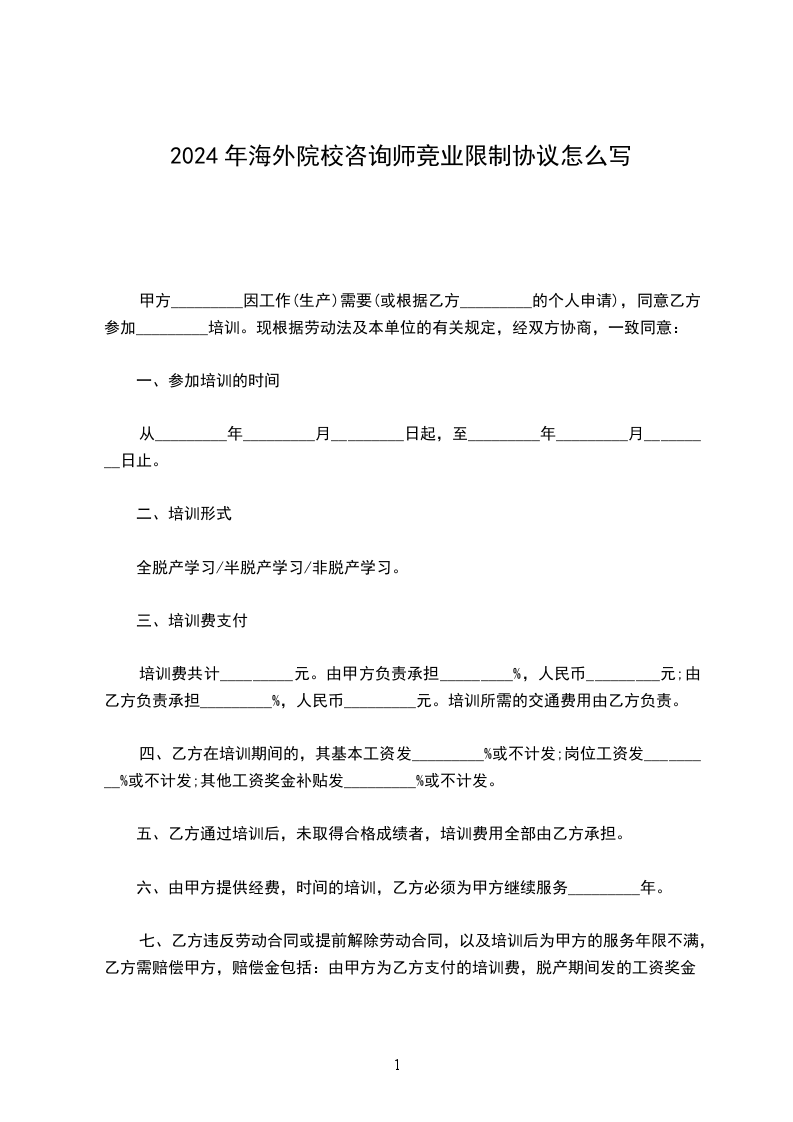 2024年海外院校咨询师竞业限制协议怎么写
