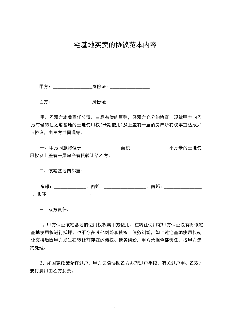 1.该地块位于_________________,土地面积为_____________平方米(折_____________亩),私人土地买卖合同。宗地四至及界址点座标详见附件国有土地使用证。