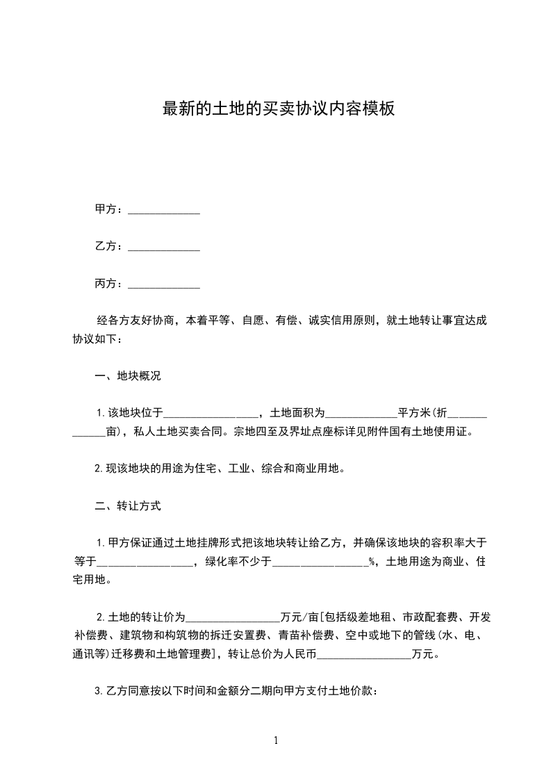 1.甲方保证通过土地挂牌形式把该地块转让给乙方,并确保该地块的容积率大于等于_________________,绿化率不少于_________________%,土地用途为商业、住宅用地。
