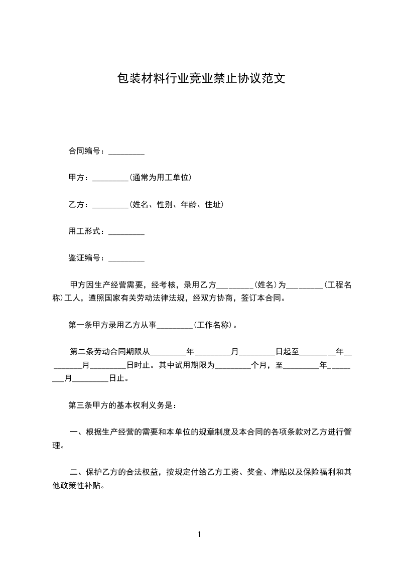 第一条甲方录用乙方从事_________(工作名称)。